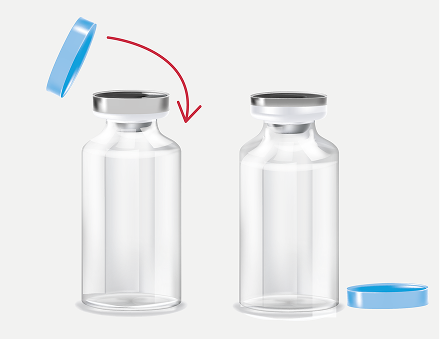 Взяться за пластиковую крышку, со стороны стрелок, удерживая флакон в руке и плавно потянуть вверх, до отрыва лепестка с пластиковой крышкой